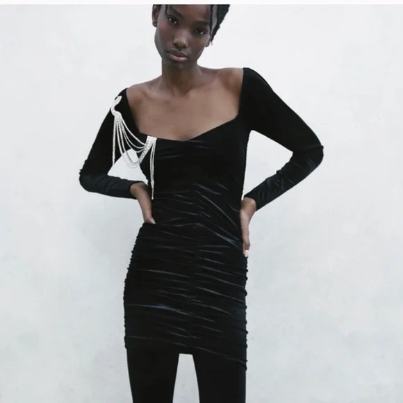 Zara Dresses Zara Black Ruched Velvet Dress Poshmark